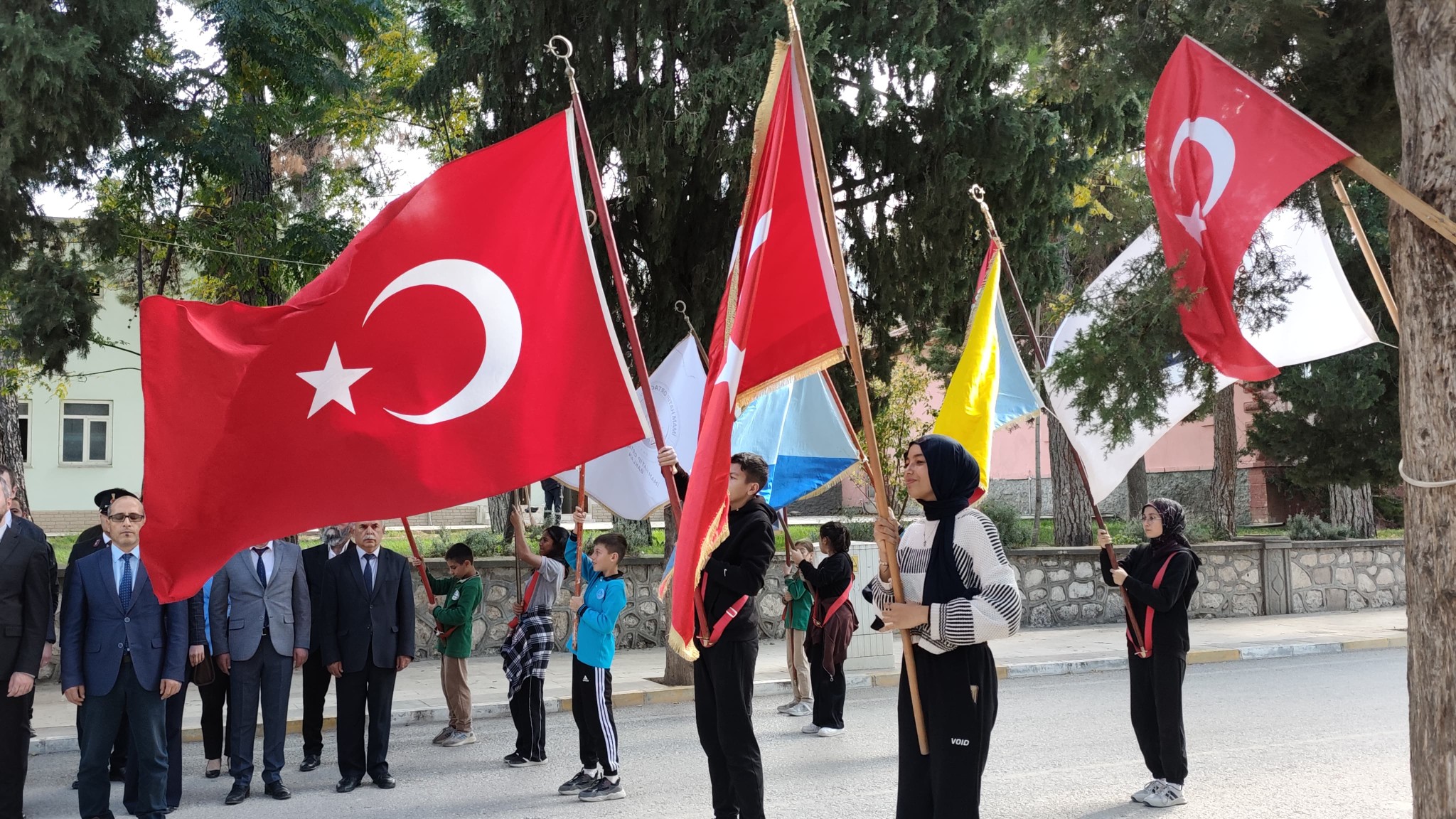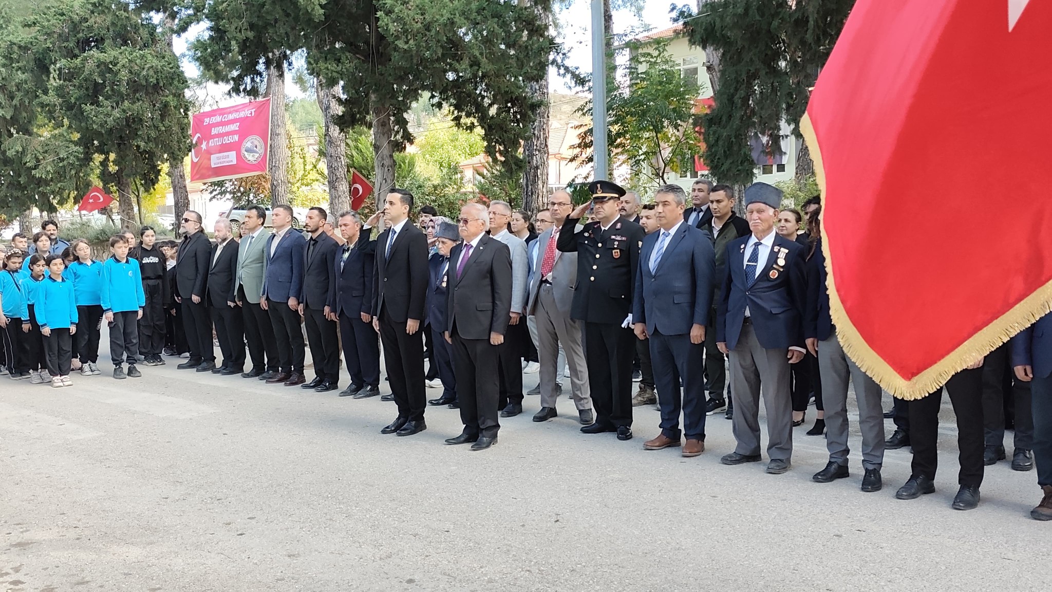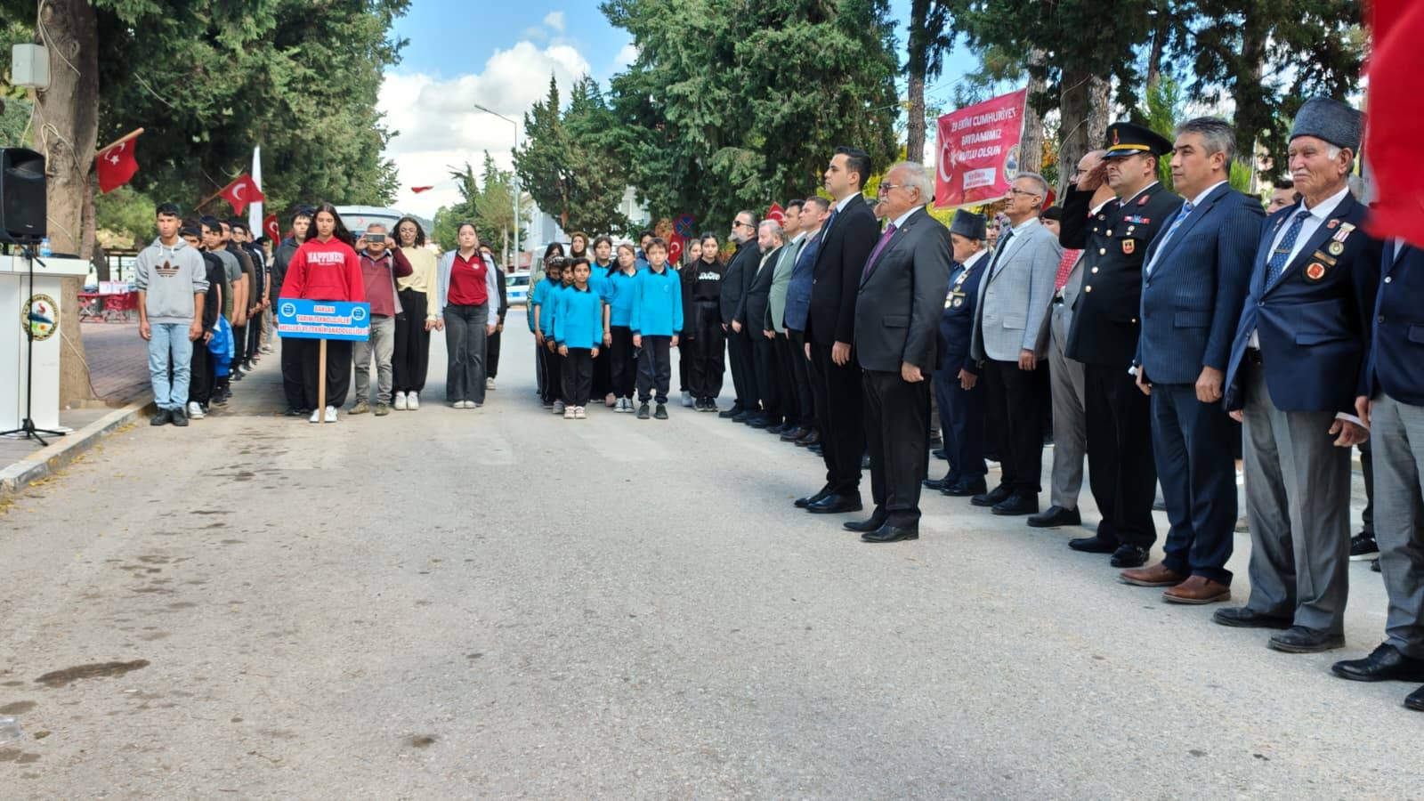 İlçemiz protokolü,öğretmenlerimiz,öğrencilerimiz ve vatandaşların katılımıyla gerçekleşen tören Saygı duruşu ve İstiklal Marşı ile sona erdi.Tüm vatandaşlarımızın CUMHURİYET BAYRAMINI saygıyla kutlarım.