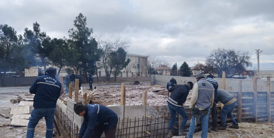 Zorlu havaya rağmen Baklan’da sosyal tesis inşaatı durmadı